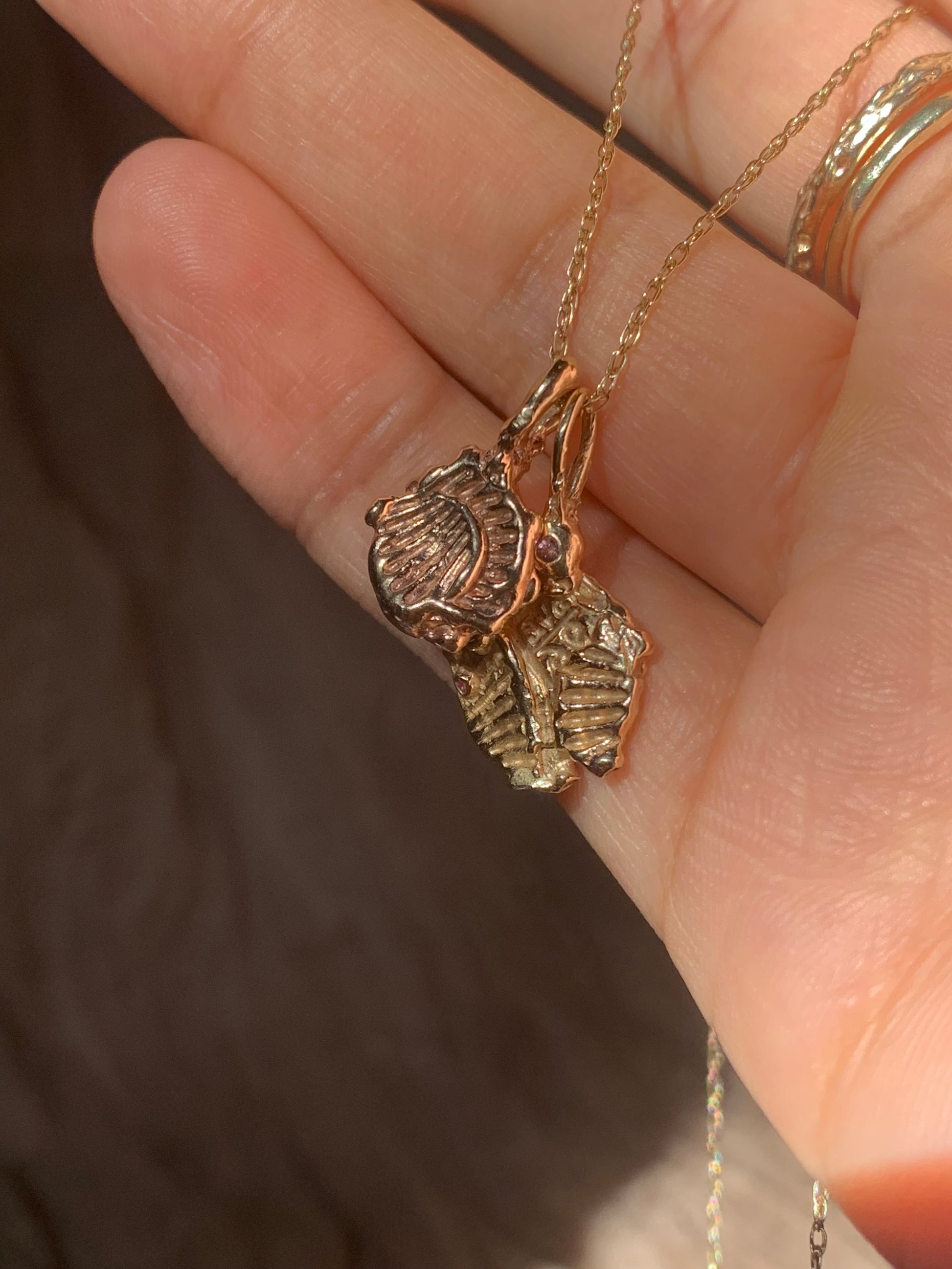 NOTE: This is a ready to ship sample of our worry shell pendant design. This listing is for the pendant only and does NOT include a chain. Please read description below of bail dimensions before purchasing.