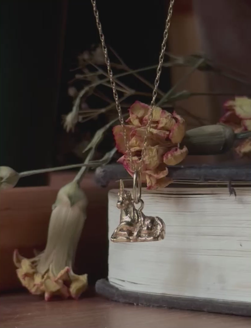 The Fable Pendant returns, reborn in 10k gold and sculpted in full dimension — every curve and contour now brought to life with stunning detail. Once a whispered emblem, it has stepped into its story, no longer imagined but made real. A piece for the dreamers who never stopped believing in quiet magic, it is a golden reminder to keep hold of the worlds we once created in our minds — and to never let that part of us slip away.